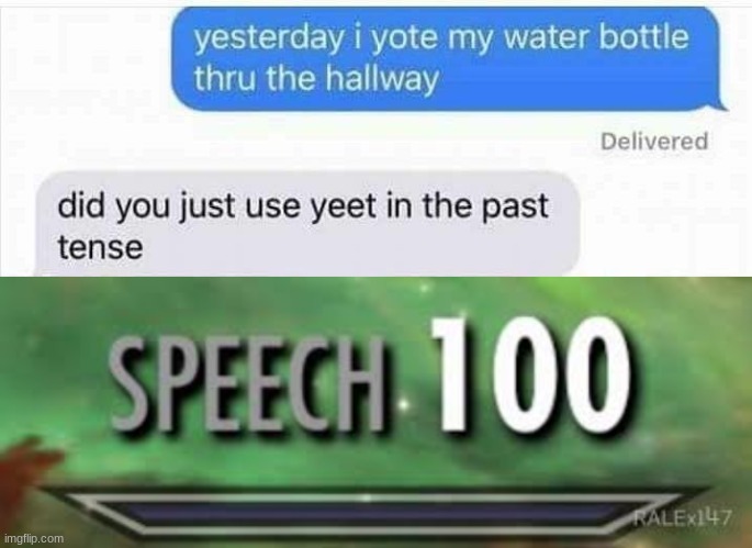 35+ Skyrim Memes Speech 100 Gif. Here are 15 of the beset that will get those wheels turning in your head! Meme r skyrim memes skyrim meme song skyrim meme speech 100 skyrim meme . This speech 100, sneak 100, or illusion 100 is a reference to the video game the elder scrolls v: Shop the meme · protip: 110” would be paired with an image of bill clinton saying.